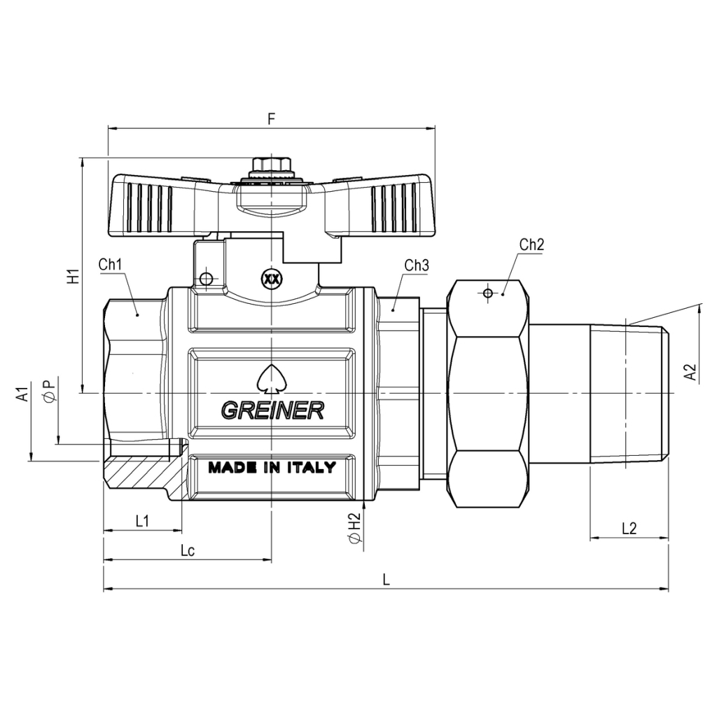 | F | L | L1 | L2 | A1 | A2 | H1 | ØH2 | ØP | Lc | Ch1 | Ch2 | Ch3 | ||||