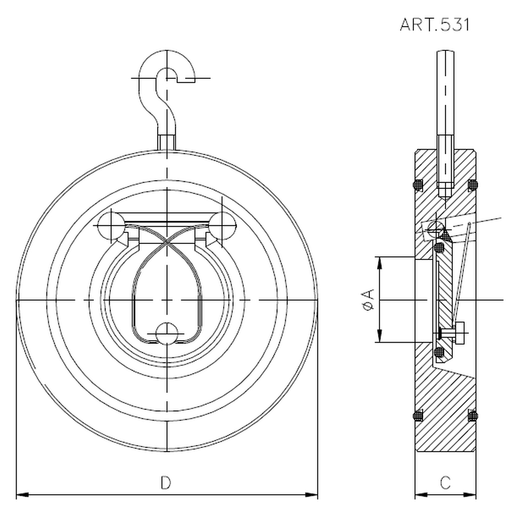 | DN | A | D | C | Kv-érték (m3/h) | ζ (-) | Súly (kg) | ||||